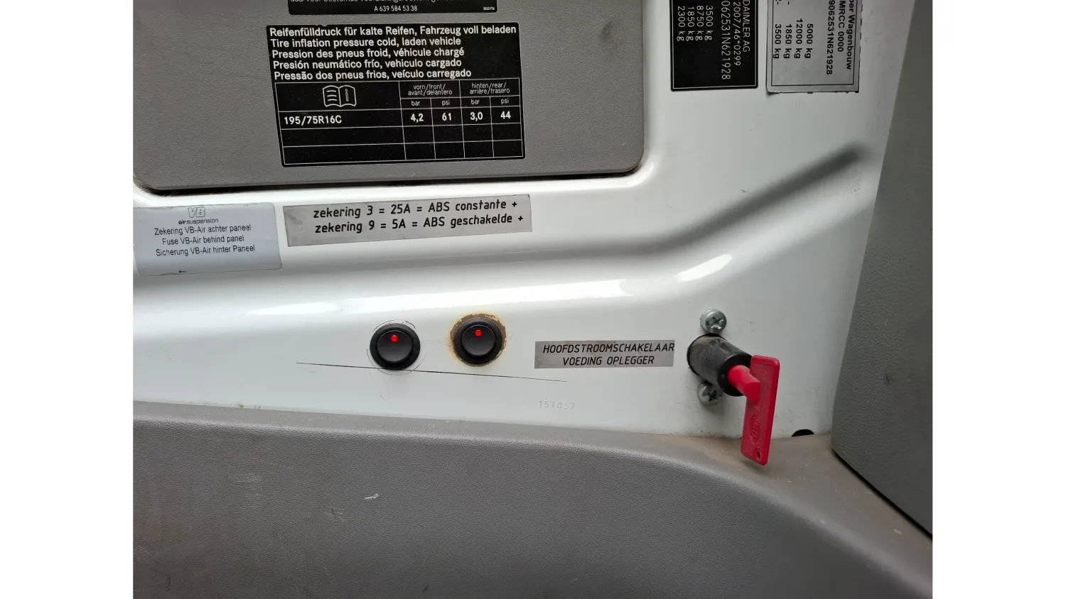 General information Type of body: BE tractor Year of construction: 2015 Cab: double, day Registration number: VP-042-S Technical information Number of cylinders: 6 Drivetrain Type of fuel: Diesel Axle configuration Brakes: disc brakes Front axle: Max. axle load: 2000 kg; Suspension: coil spring suspension Rear axle: Double wheels; Max. axle load: 2800 kg; Suspension: air suspension Measures and weights Empty weight: 2.240 kg GVW: 3.500 kg Wheelbase: 367 cm Maintenance APK (MOT): tested until 03/2027 Condition General condition: very good Technical condition: very good Visual appearance: very good Financial information VAT/margin: VAT qualifying