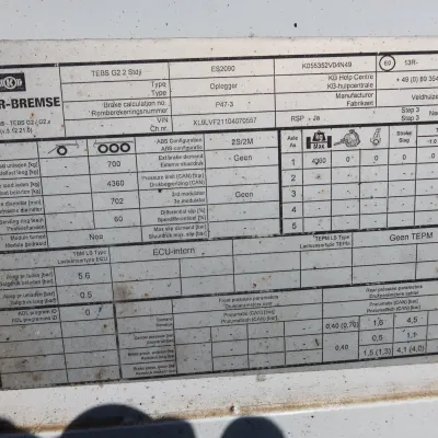General information Bodywork: BE semi-trailer Year of construction: 2021 Registration number: OS-83-VZ Axle configuration Suspension: air suspension Max. rear axle load: 3990 kg Measures and weights Empty weight: 1.860 kg GVW: 5.500 kg Wheelbase: 435 cm Functional Dimensions of cargo space: 755 x 215 x 228 cm Tail lift: Dhollandia, 2497 kg Maintenance APK (MOT): tested until 08/2026 Driving through higth 222 cm 2 Pieces in stock 2 Rails Rollstops