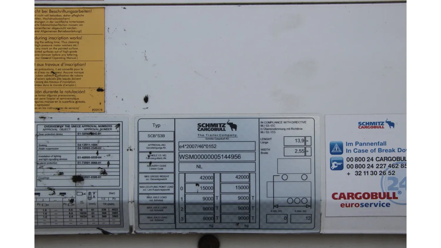 General information Year of construction: 2015 Registration number: ON-73-VK Axle configuration Rear axle 1: Max. axle load: 9000 kg Rear axle 2: Max. axle load: 9000 kg Rear axle 3: Max. axle load: 9000 kg Measures and weights Empty weight: 7.276 kg GVW: 42.000 kg Wheelbase: 901 cm Maintenance APK (MOT): tested until 07/2026 Condition General condition: very good Technical condition: good Visual appearance: very good
