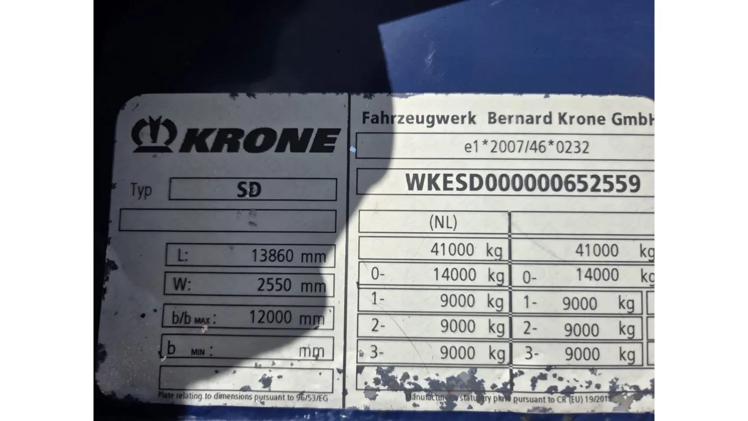 General information Year of construction: 2015 Reference number: 137 Axle configuration Tyre size: 385/65R22.5 Make axles: BPW ECO PLUS Brakes: drum brakes Rear axle 1: Max. axle load: 9000 kg Rear axle 2: Max. axle load: 9000 kg Rear axle 3: Max. axle load: 9000 kg Measures and weights Empty weight: 7.100 kg GVW: 41.000 kg Wheelbase: 896 cm Functional Dimensions of cargo space: 1360 x 250 x 270 cm Condition General condition: good Technical condition: good Visual appearance: good = Dealer information = WWW.DENOTTERTRUCKS.COM