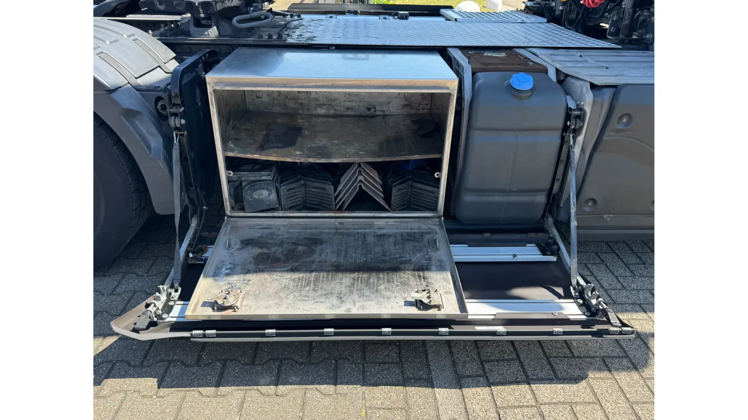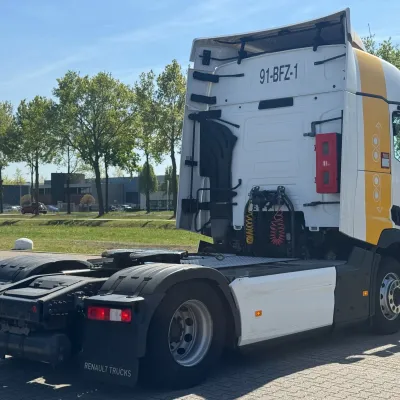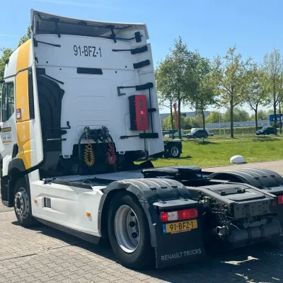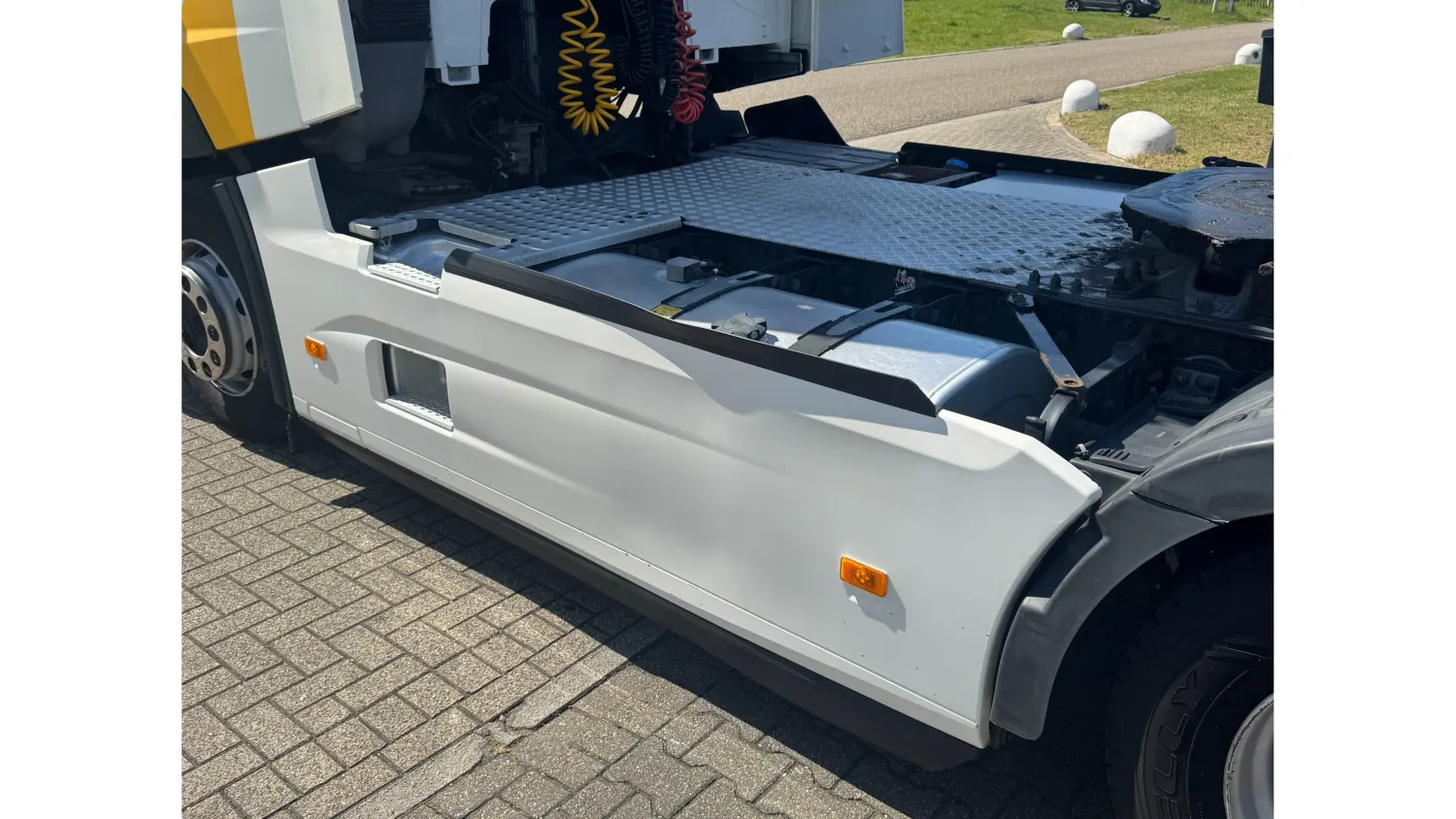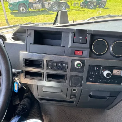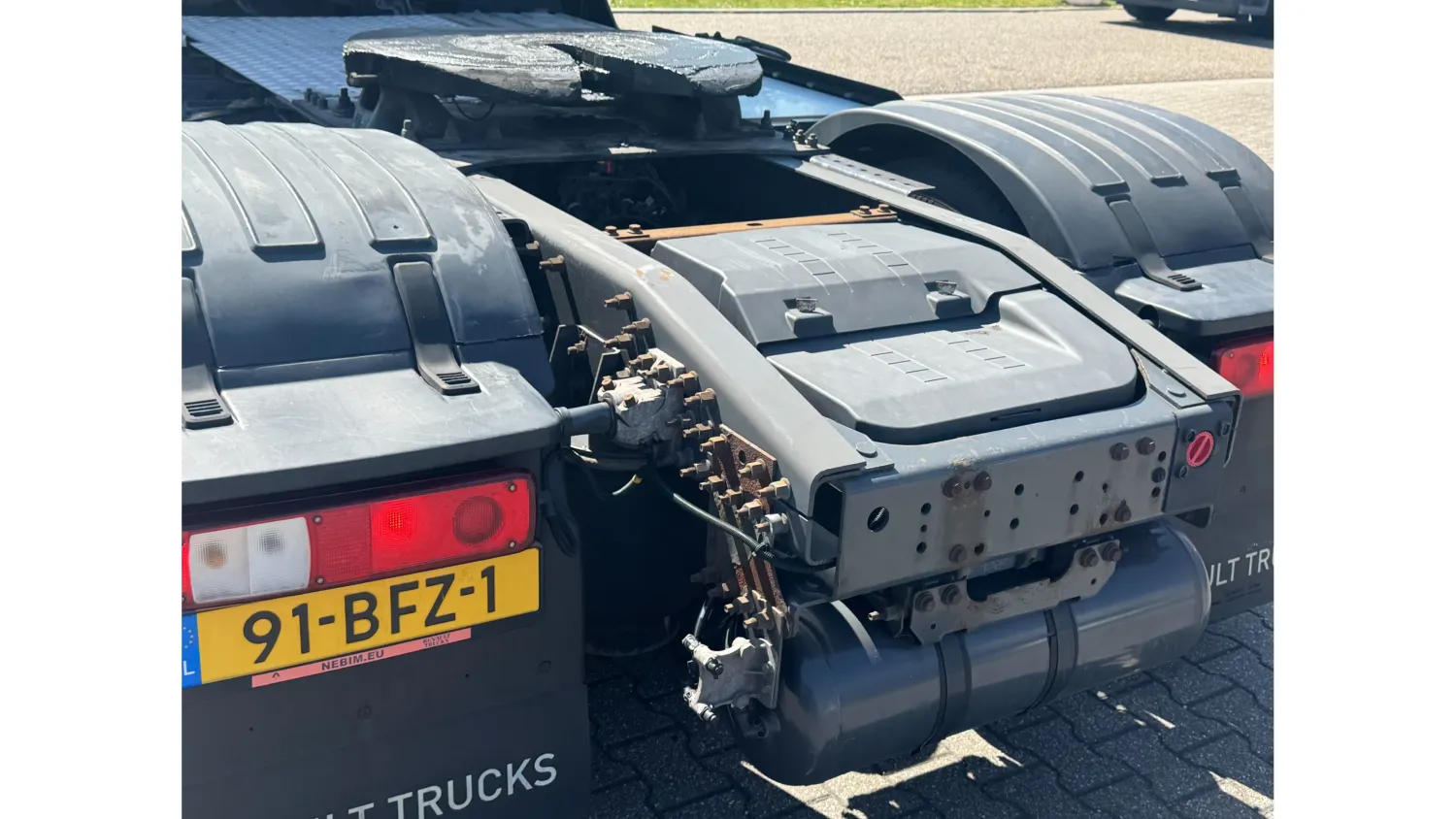 General information Bodywork: Standard tractor Year of construction: 2015 Reference number: 31900 Registration number: 91-BFZ-1 Technical information Number of cylinders: 6 Drivetrain AdBlue system: Yes Axle configuration Tyre size: 315/70R22.5 Front axle: Max. axle load: 7500 kg; Steering; Suspension: leaf suspension Rear axle: Double wheels; Max. axle load: 11500 kg; Suspension: air suspension Measures and weights Empty weight: 7.814 kg GVW: 20.500 kg Wheelbase: 380 cm Maintenance APK (MOT): tested until 05/2027 Condition General condition: good Technical condition: good Visual appearance: good Damages: none