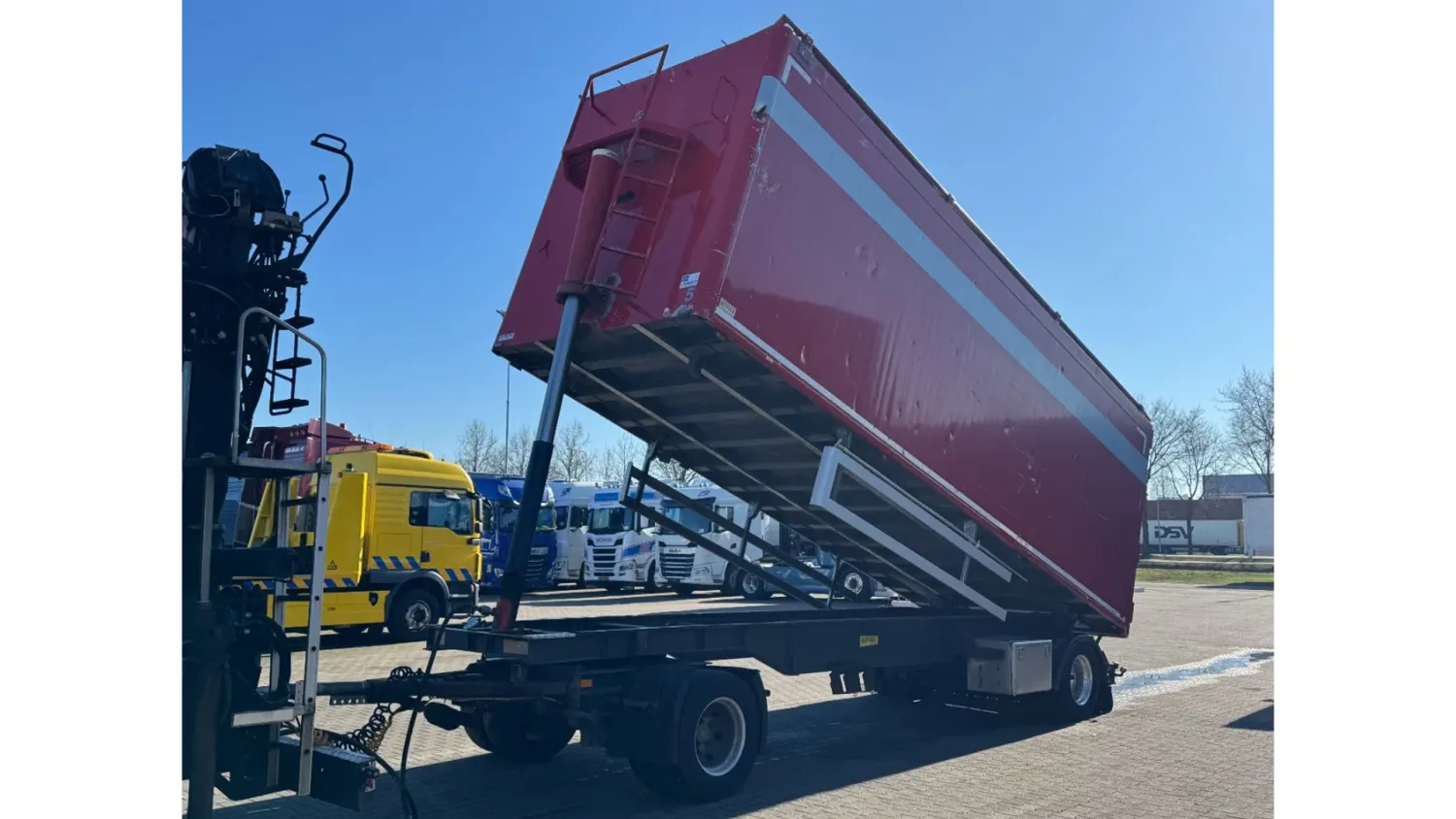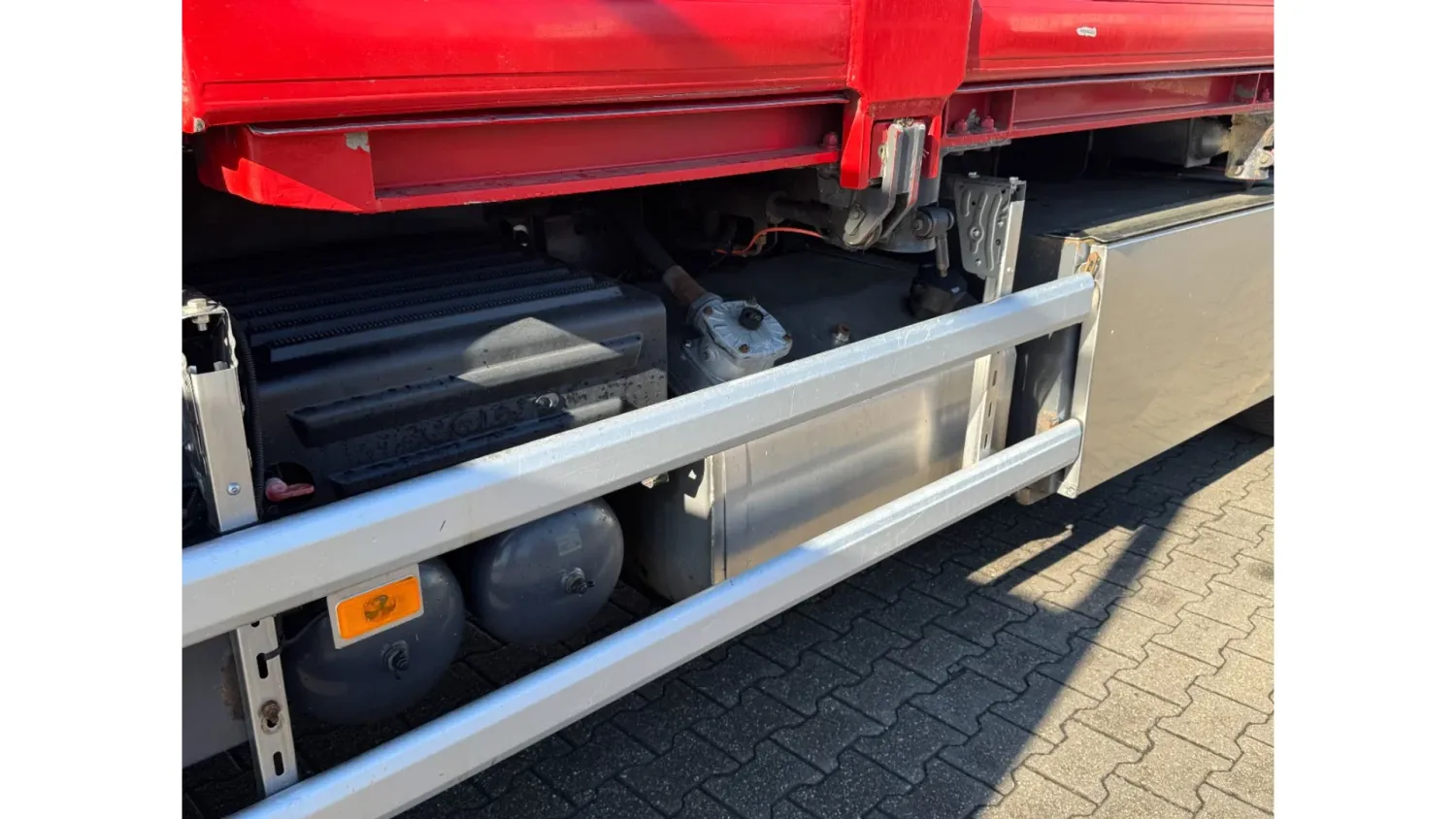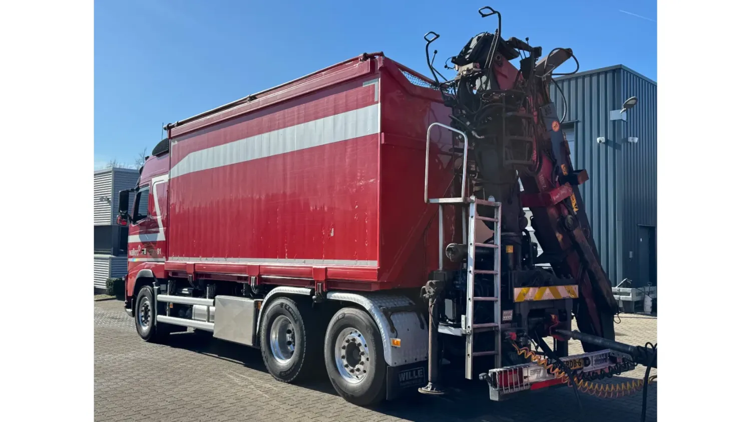 General information Year of construction: 2013 Reference number: 31664 Registration number: 93-BDB-6 Technical information Number of cylinders: 6 Drivetrain AdBlue system: Yes Transmission Transmission: I-SHIFT, Automatic Axle configuration Front axle: Tyre size: 385/65R22.5; Max. axle load: 9000 kg; Steering; Tyre profile left: 20%; Tyre profile right: 20% Rear axle 1: Tyre size: 315/80R22.5; Double wheels; Max. axle load: 11500 kg; Tyre profile left inner: 40%; Tyre profile left outer: 40%; Tyre profile right outer: 40%; Tyre profile right outer: 40% Rear axle 2: Tyre size: 385/65R22.5; Lift axle; Max. axle load: 7500 kg; Tyre profile left: 90%; Tyre profile right: 90% Measures and weights Empty weight: 15.660 kg GVW: 28.000 kg Wheelbase: 460 cm Functional Crane: Loglift 105Z, on rear of chassis Maintenance APK (MOT): tested until 09/2026 Condition General condition: good Technical condition: good Visual appearance: good