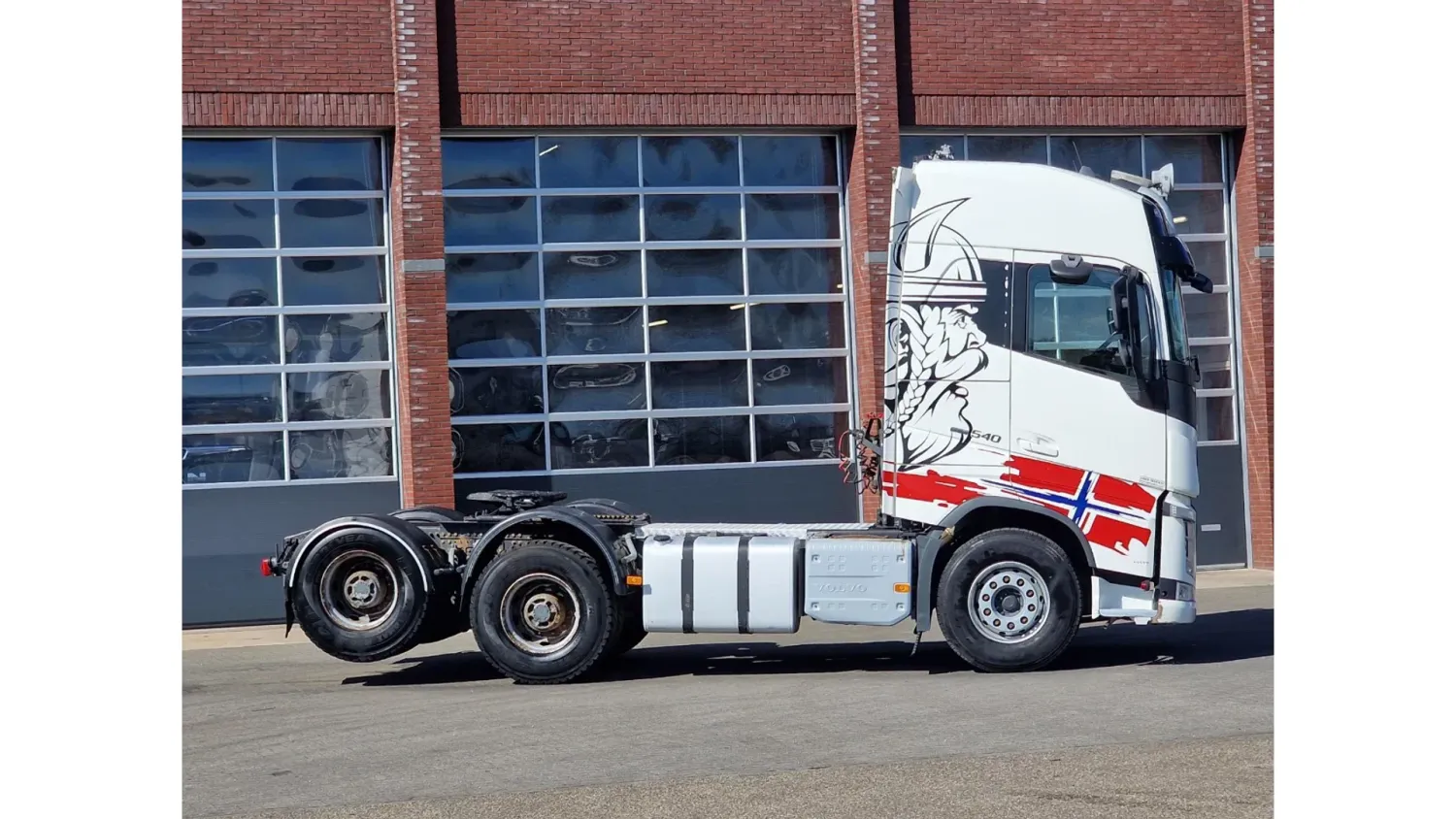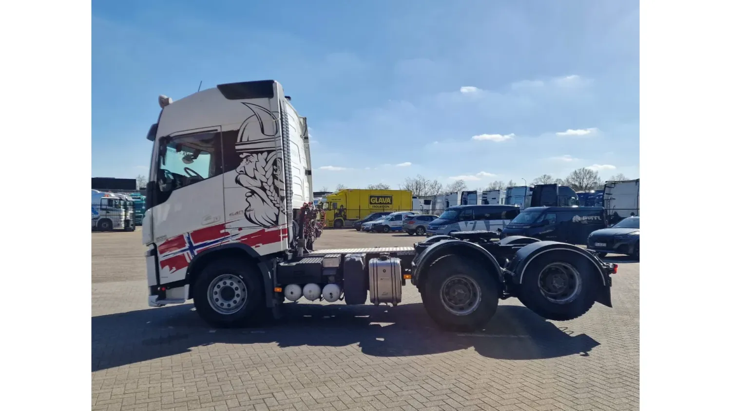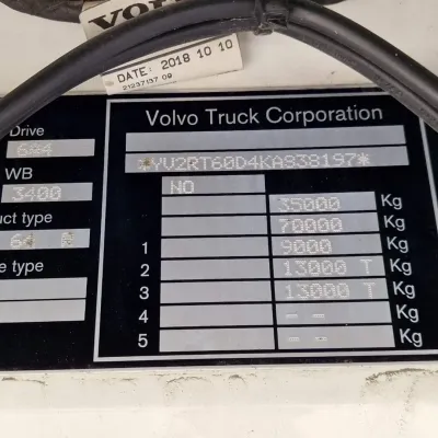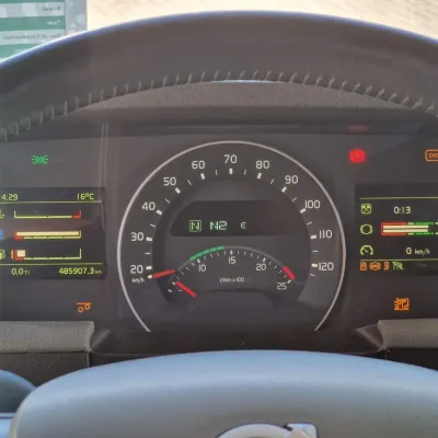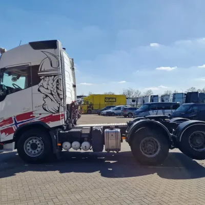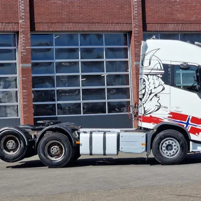 General information Bodywork: Standard tractor Year of construction: 2019 Reference number: H290364 Technical information Number of cylinders: 6 Transmission Transmission: I shift Dual Clutch , 12 gears, Automatic Axle configuration Suspension: air suspension Front axle: Tyre size: 385/65R22.5; Max. axle load: 9000 kg; Steering; Tyre profile left: 50%; Tyre profile right: 50% Rear axle 1: Tyre size: 315/80R22.5; Double wheels; Max. axle load: 13000 kg; Tyre profile left inner: 60%; Tyre profile left outer: 60%; Tyre profile right outer: 60%; Tyre profile right outer: 60%; Reduction: hub reduction Rear axle 2: Tyre size: 315/80R22.5; Double wheels; Lift axle; Max. axle load: 13000 kg; Tyre profile left inner: 60%; Tyre profile left outer: 60%; Tyre profile right outer: 60%; Tyre profile right outer: 60%; Reduction: hub reduction Measures and weights Empty weight: 10.285 kg GVW: 35.000 kg Wheelbase: 340 cm Condition General condition: good Technical condition: good Visual appearance: good Volvo FH13.540 Globetrotter 6x4 - Retarder - PTO/Hydraulic - Lift axle - HUB reduction - MY: 2-4-2019 KM: 485904 YV2RT60D4KA838197 6x4 with HUB reduction and Lift axle Retarder 3.40 wheelbase Full air suspension Leather