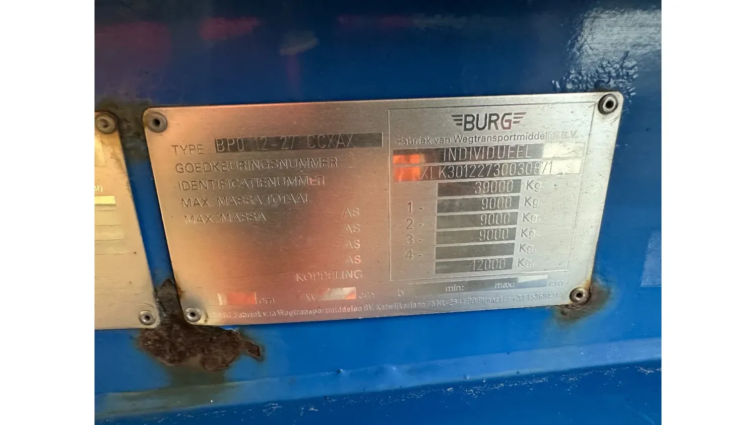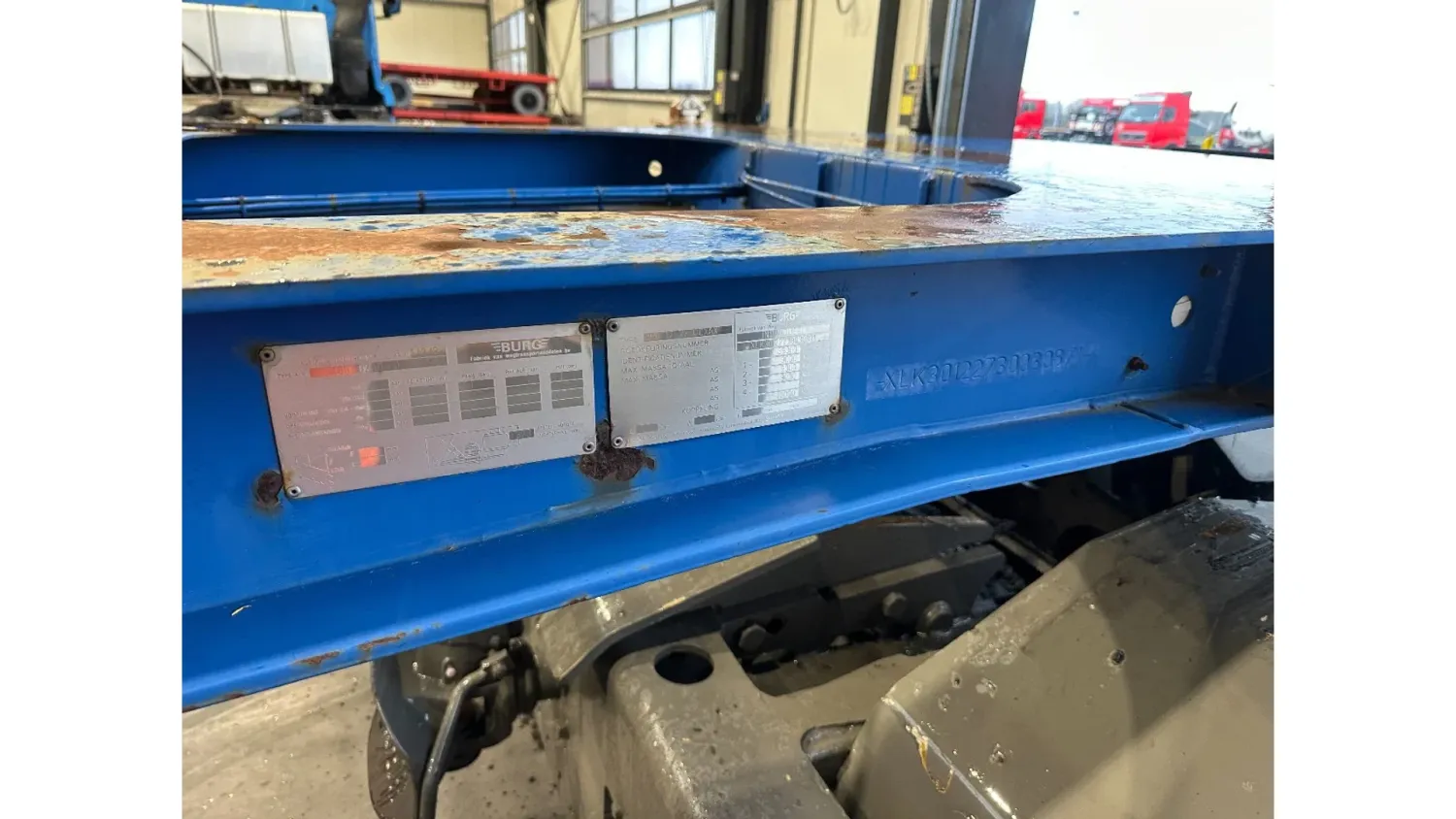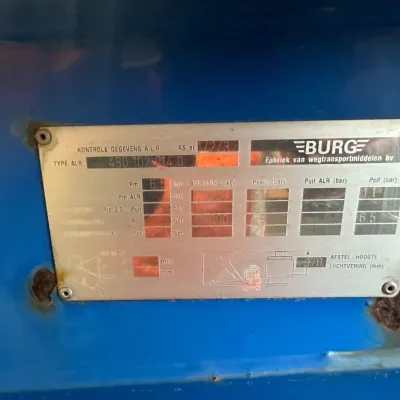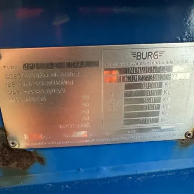 General information Year of construction: 2003 Reference number: OH10FSX Registration number: OH-10-FS Axle configuration Tyre size: 385/65-R22.5 Make axles: SAF INTRADISC Rear axle 1: Max. axle load: 9000 kg; Tyre profile left: 50%; Tyre profile right: 50% Rear axle 2: Max. axle load: 9000 kg; Tyre profile left: 50%; Tyre profile right: 95% Rear axle 3: Max. axle load: 9000 kg; Tyre profile left: 75%; Tyre profile right: 50% Measures and weights Empty weight: 3.290 kg GVW: 39.000 kg Wheelbase: 578 cm Functional Dimensions of cargo space: 817 x 244 cm Make of bodywork: BURG BPO 12-27 CCXAX Condition General condition: very good Technical condition: very good Visual appearance: very good Additional information Please contact Arne Honingh (+31654262504, sales@equipped4u.eu) for more information very nice 2003 BURG 20FT ADR chassis with ABS/EBS, SAF axles with disc brakes (INTRADISC), ADR (EXII, EXIII, FL, OX, AT), 1st axle = lift axle, 1x20FT, unladen weight: 3,290kg, max. mass: 39,000kg, 385/65-R22.5 tires (profile left: 7/10/15mm; profile right: 13/6/15mm), Dutch registration