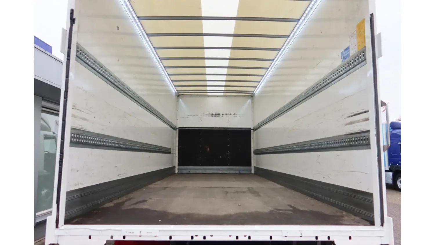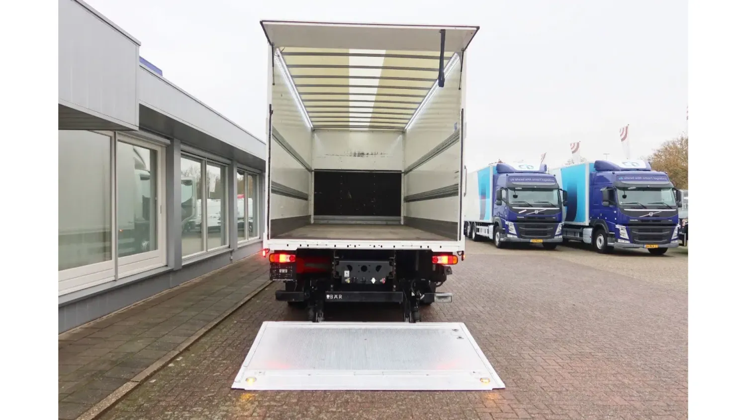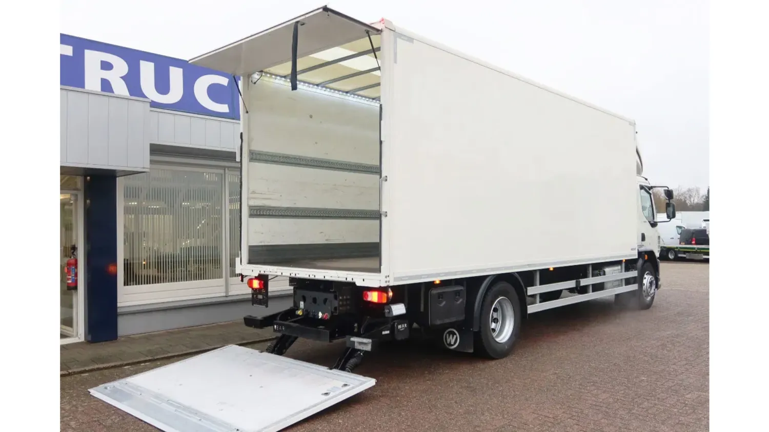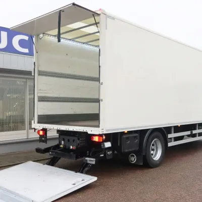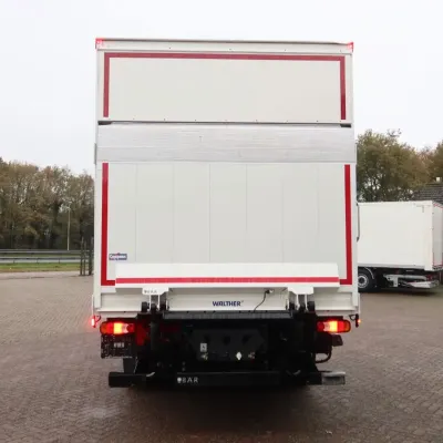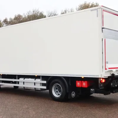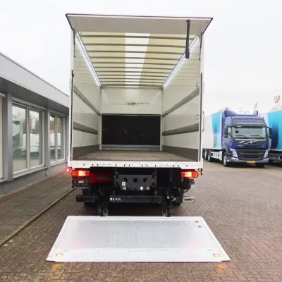 General information Year of construction: 2021 Cab: day Reference number: bb-149-z Registration number: 509764 Axle configuration Front axle: Steering; Tyre profile left: 30%; Tyre profile right: 30%; Suspension: leaf suspension Rear axle: Double wheels; Tyre profile left inner: 100%; Tyre profile left outer: 100%; Tyre profile right outer: 100%; Tyre profile right outer: 100%; Suspension: air suspension Weights Empty weight: 8.410 kg GVW: 19.000 kg Functional Dimensions of cargo space: 730 x 250 x 255 cm Tail lift: Dhollandia, 2500 kg