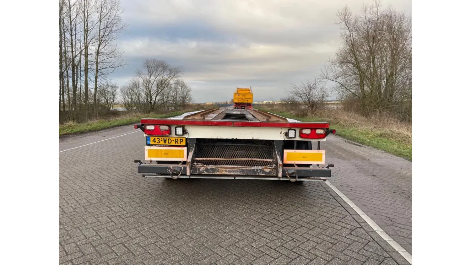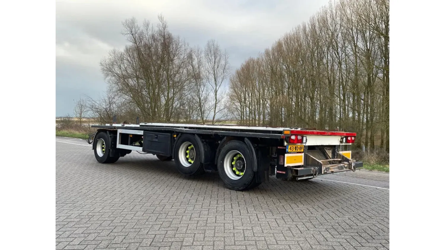 Year of construction: 2009 Max. front axle load: 9000 kg Rear axle 1: Lift axle; Max. axle load: 9000 kg Rear axle 2: Max. axle load: 9000 kg Empty weight: 4.660 kg GVW: 27.000 kg Wheelbase: 505 cm Reference number: 3765 H Registration number: 43-WD-RP