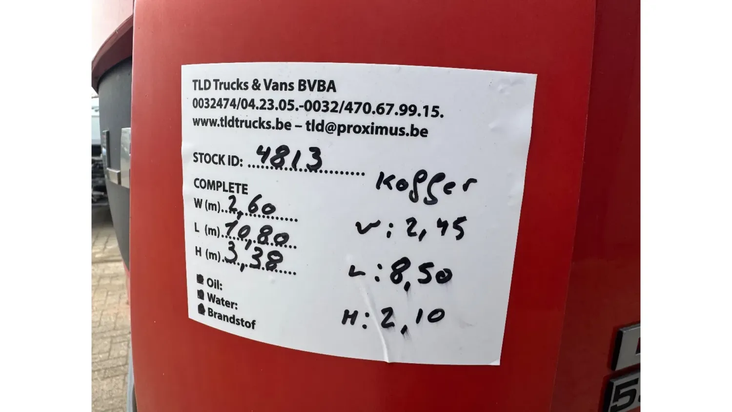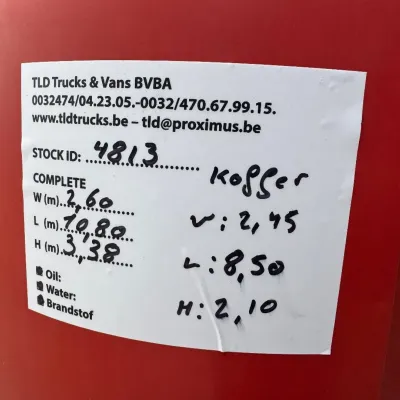 General information Year of construction: 2009 Cab: day Reference number: 4813 Technical information Number of cylinders: 6 AdBlue system: Yes Front axle: Steering; Suspension: leaf suspension Rear axle: Double wheels; Suspension: air suspension Empty weight: 8.220 kg GVW: 18.600 kg Functional Dimensions of cargo space: 850 x 245 x 210 cm Tail lift: D'Hollandia, tail lift, 2000 kg Condition General condition: very good Technical condition: very good Visual appearance: very good Additional information Please contact Thierry Leemans (+32474042305, tld@proximus.be) for more information MANUAL GEARBOX BELGIAN TRUCK